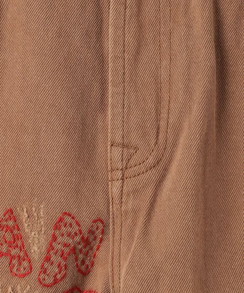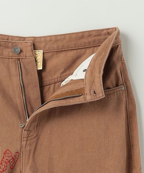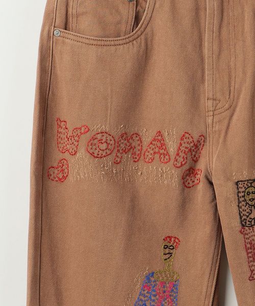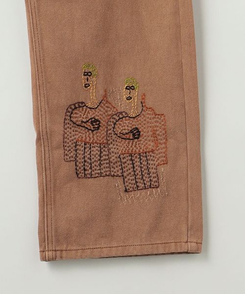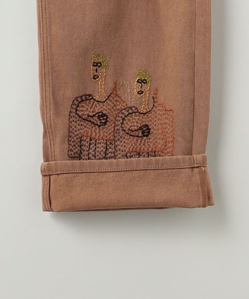 前面全体にていねいに刺繍があしられたデニムパンツ。
