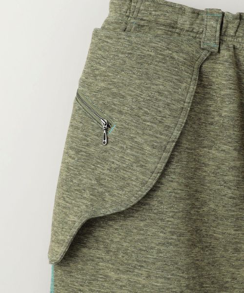 パンツ右側に施された、外付けポケットのような遊び心のあるディテールが特徴。