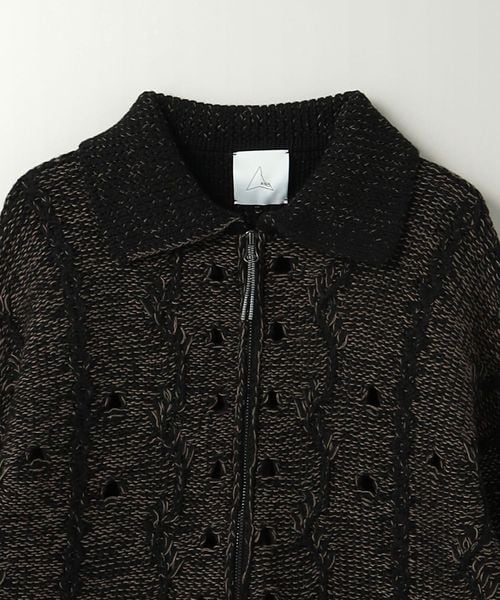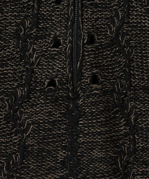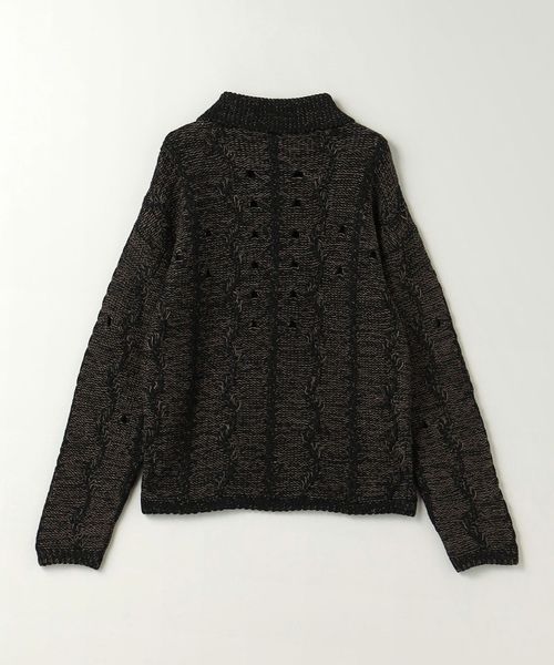 編み地の変化が印象的なハーフジップの襟付きケーブルニット。
