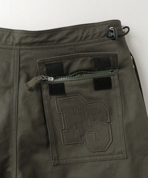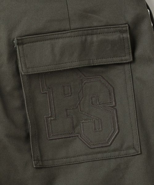 バックポケットに同系色でPS刺繍のアクセントが施されています。
