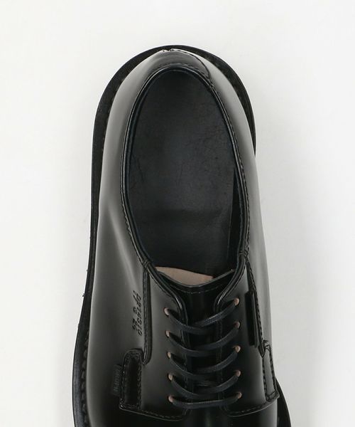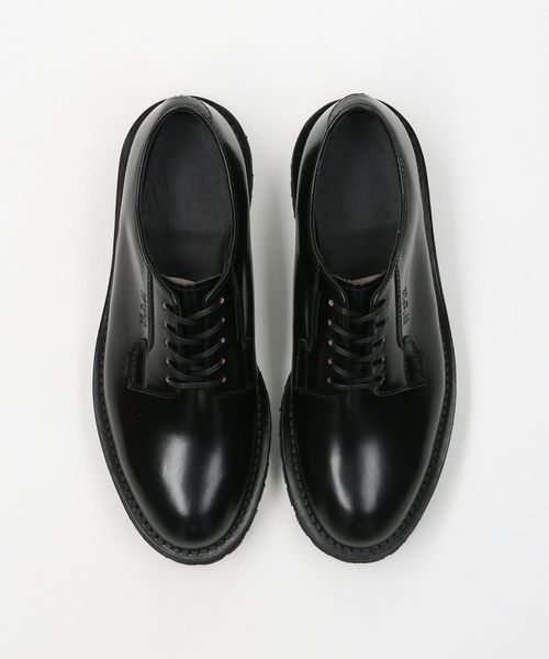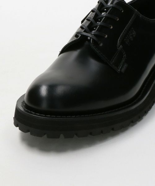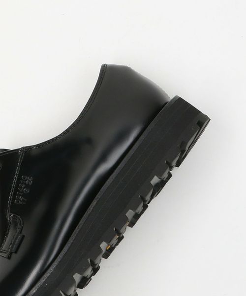 頑丈なステッチとせり出したコバ、ロウ引きのシューレースを組み合わせ、無骨ながらクラシックな印象に。