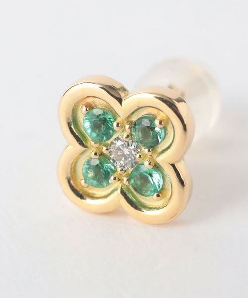 K18ゴールドにエメラルドとダイヤモンドをセッティング。
