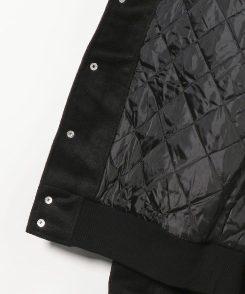 左胸と背面にグラフィックが施されたバーシティジャケット。
