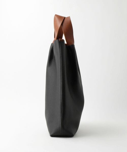 持ち手をつまむように縫いつけた縦型トートバッグ