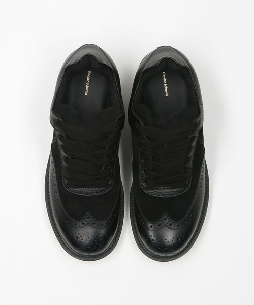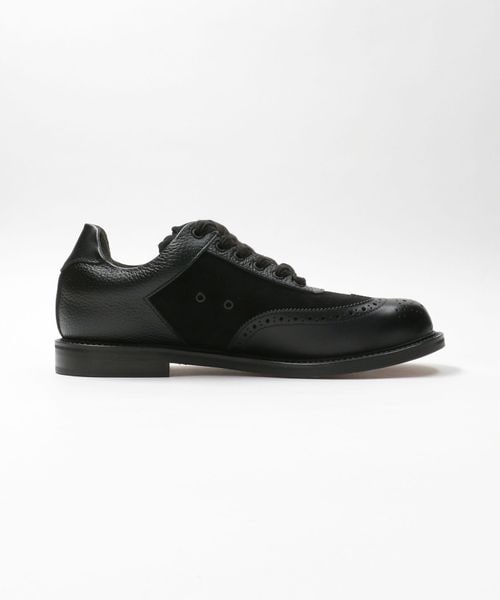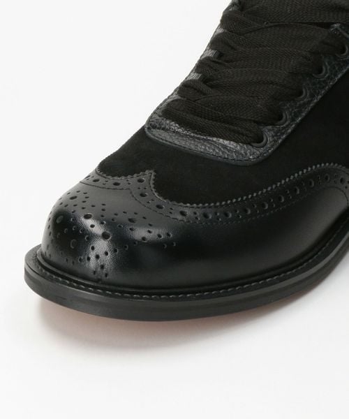 スケートボーディングのためのファットレースや分厚いタン、ドレスアップのためのウイングチップやパーフォレーションが際立つレザーと、出自と目的の異なるディテールが混在するドレススケートシューズ。