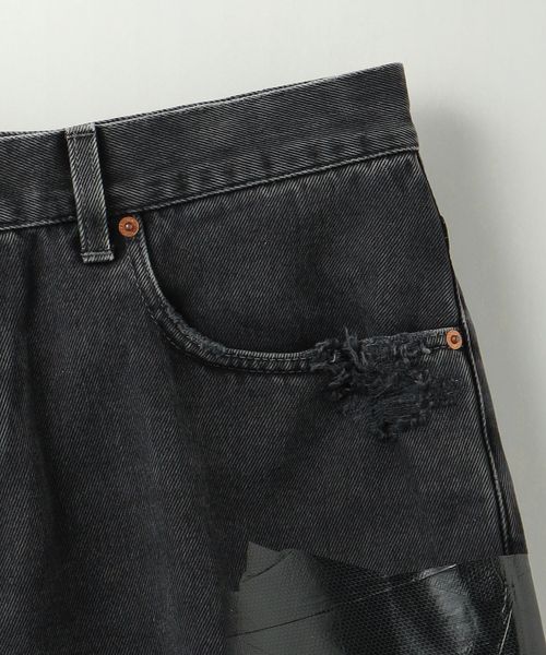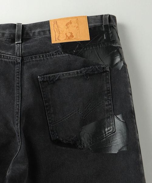 ロゴパッチや裾のカットオフなど個性溢れるディテール使いが印象的な一本です。