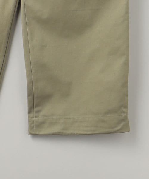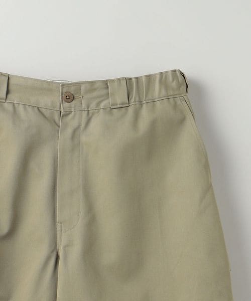 <Dickies>のTCツイルを使用、しっかりとハリのある生地にウォッシュを施し、やわらかく馴染みの良い質感です。
