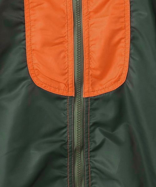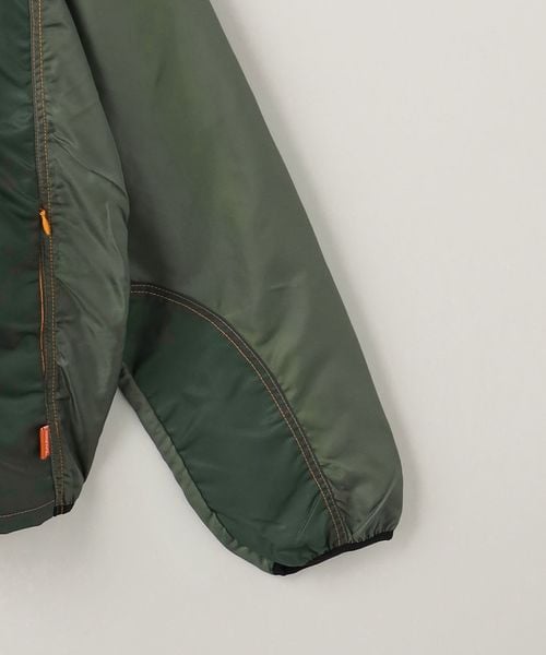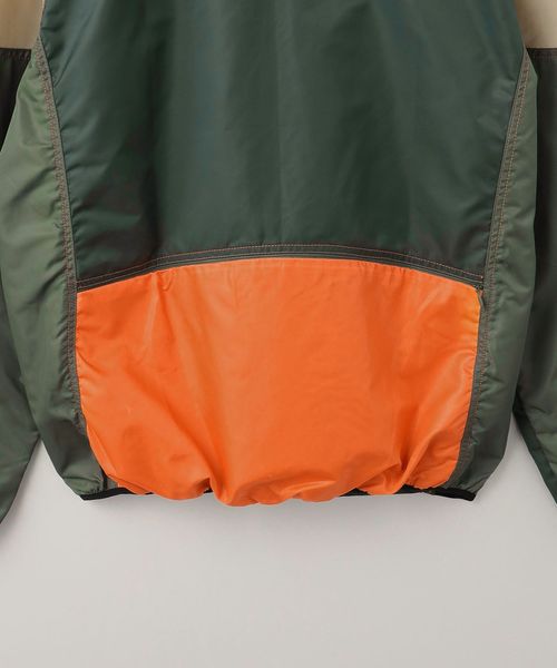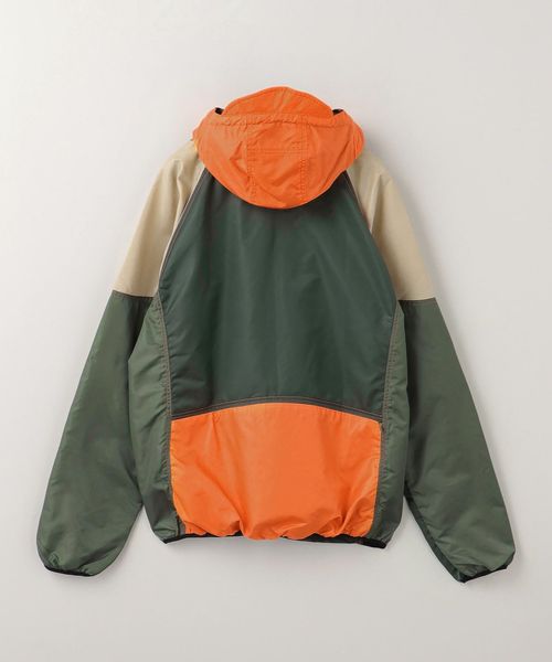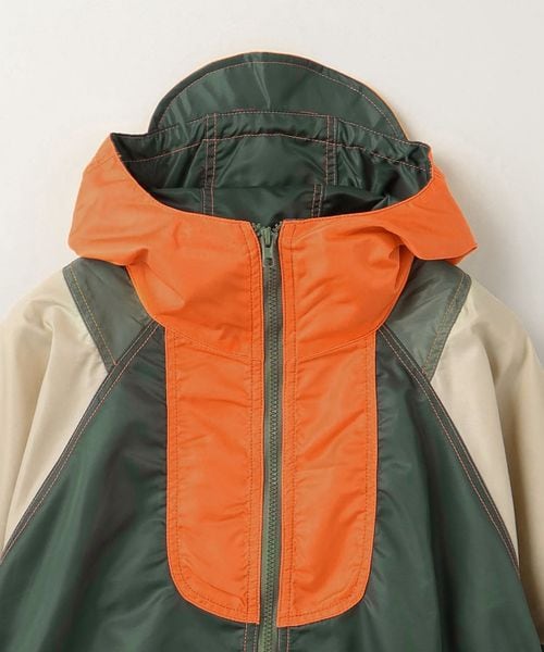 カラーパネルデザインが目を引くフーデッドブルゾン。