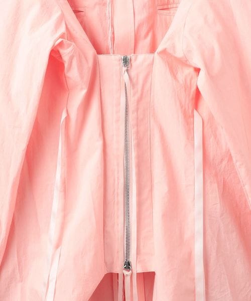 ネックや袖口のリボンをたらすなど個性溢れるディテール。