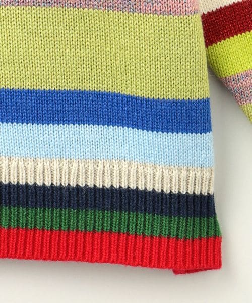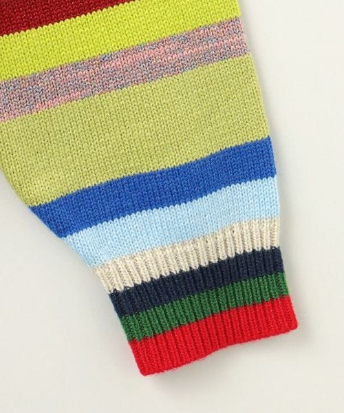 ニット素材を用いた、鮮やかなマルチボーダー柄が目を引きます。