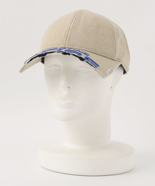 ロゴ刺繍を配し、カットオフされたつば部分が特徴的なデザイン。