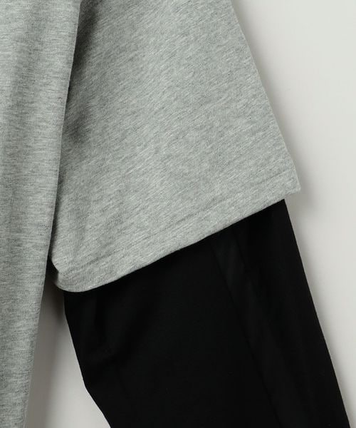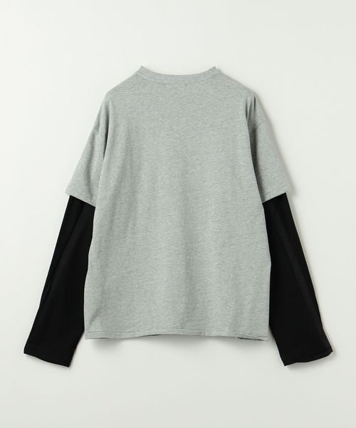 3種類の素材を使用したドッキングデザインのロングスリーブTシャツ。