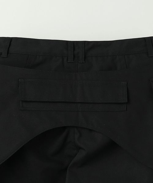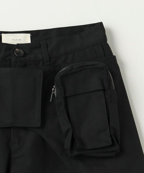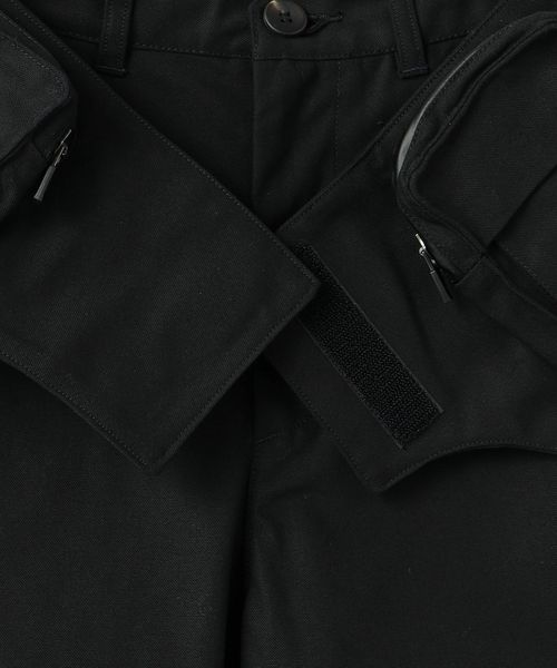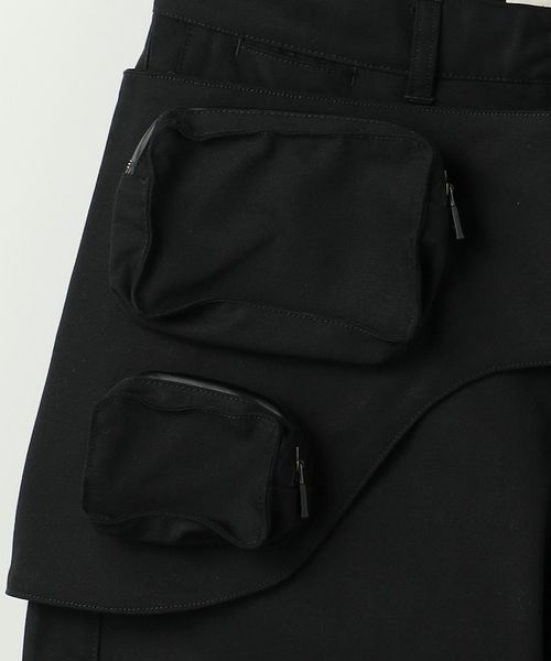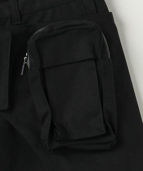 ポケットパーツを装備するとテックウェア感を楽しむことができ、外すとシンプルなトラウザーズとして着用できます。