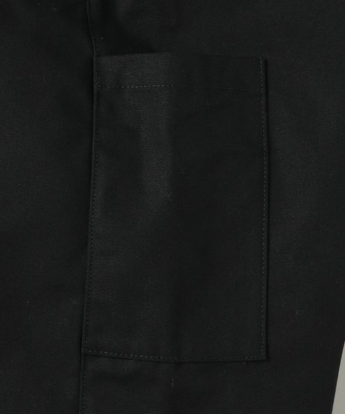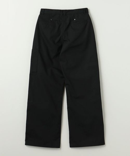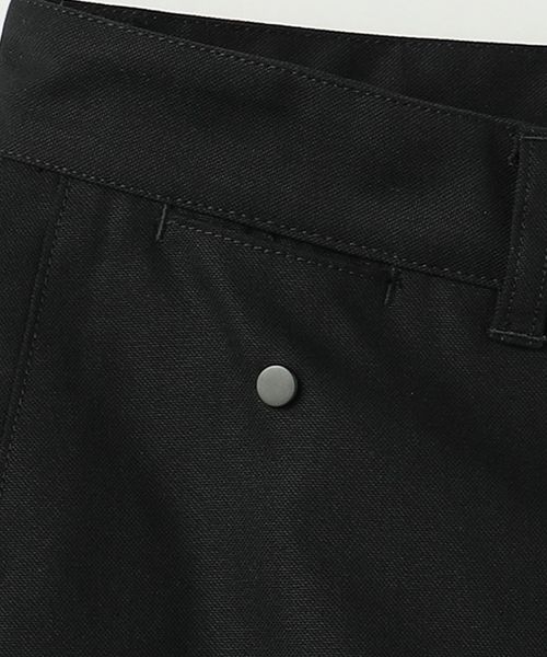太めストレートのシルエットをしたワークパンツで、腰周りに取り外し可能な多機能ポケットパーツを装備。