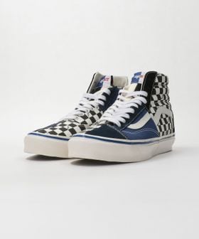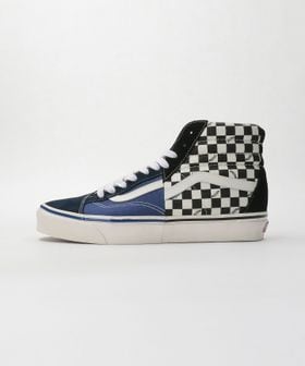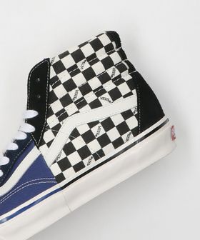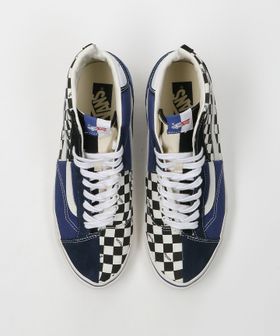 快適なパッド入りの履き口を備えたハイトップのレースアップで、アッパーにはチェッカーボードのプリントが施されています。