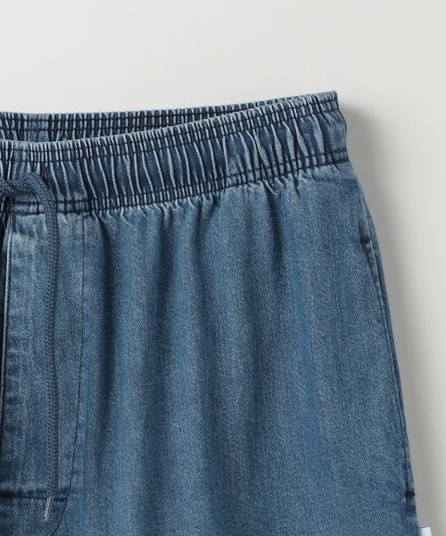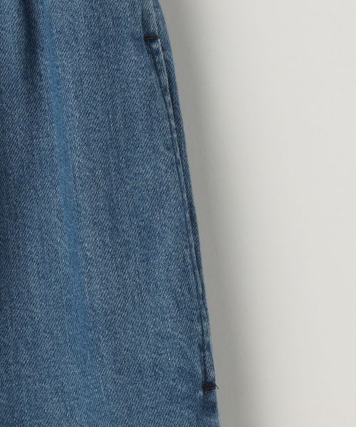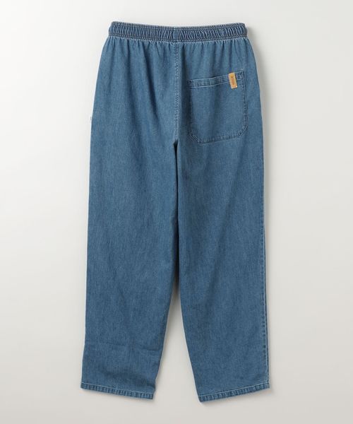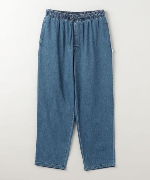 8ozのムラ糸デニム生地を使用しストーンバイオブリーチ加工を施したウエストゴム仕様のイージーパンツ。