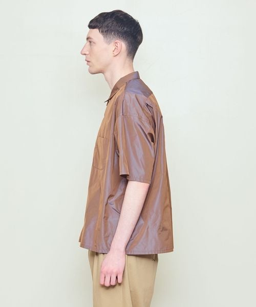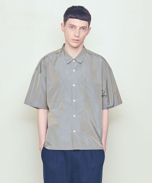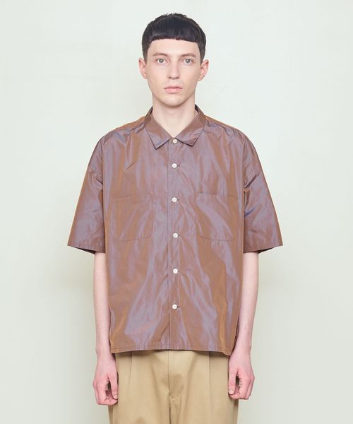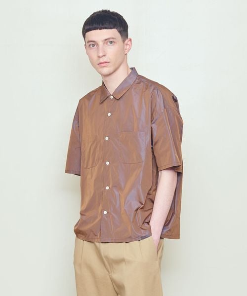 上品な玉虫調の光沢が印象的な半袖シャツ。