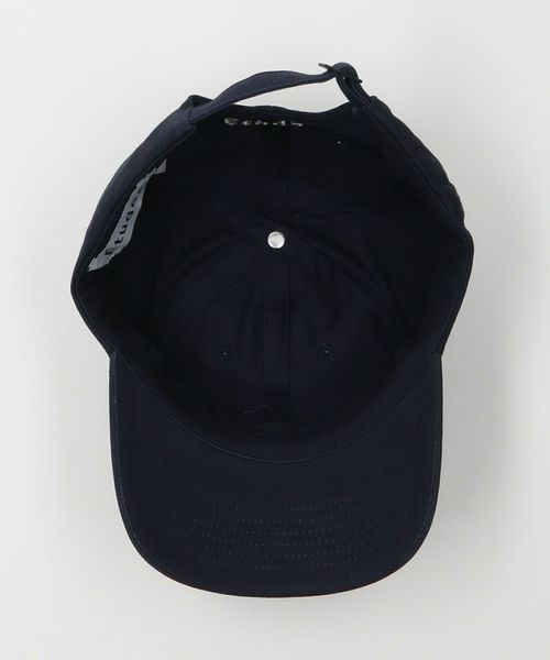 背面にはロゴ刺繍をあしらい、ベルトでフィット感の調整が可能。