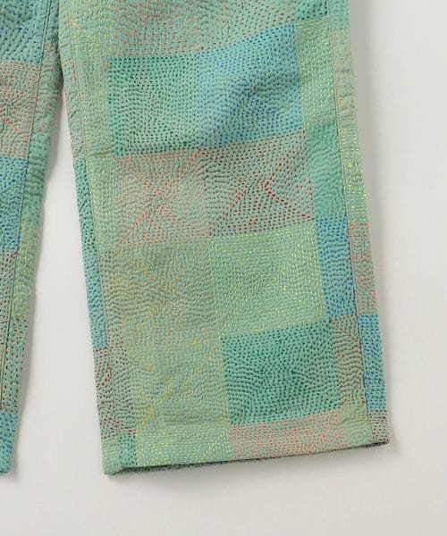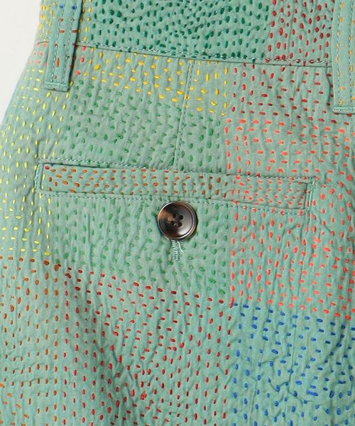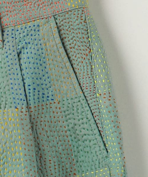 スクエア状にていねいに刺繍があしられたトラウザーズ。