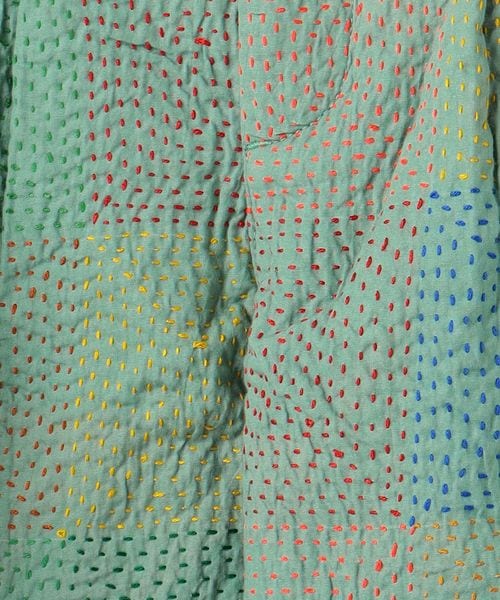 コットン素材のグリーンカラーに刺繍がニュアンスで表現された華やかなデザイン。