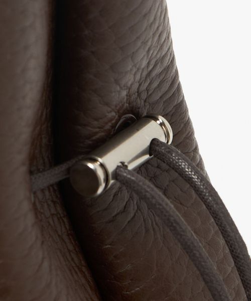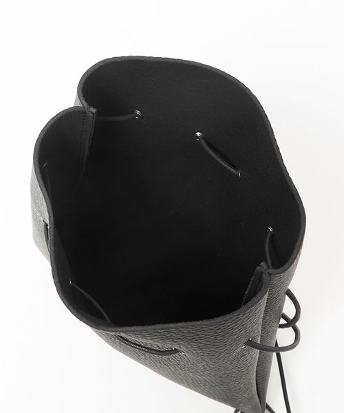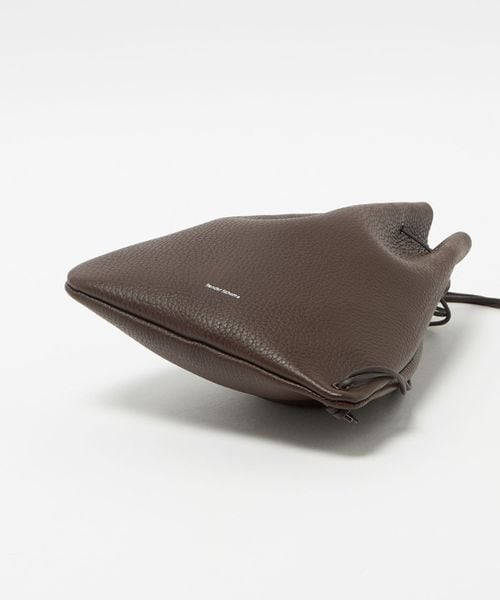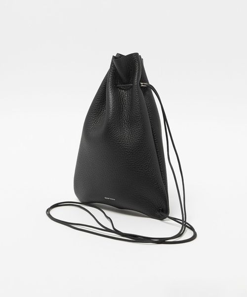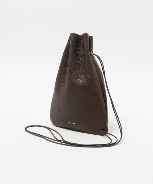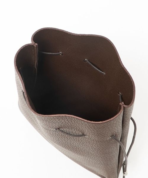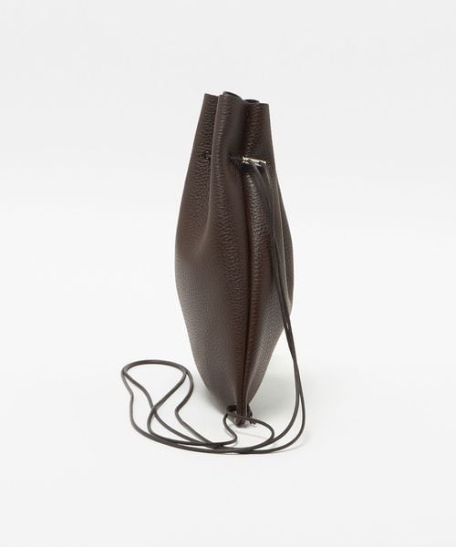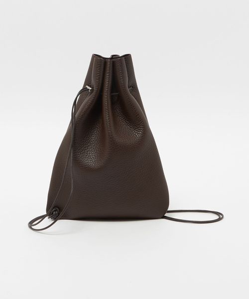 シボ型押しの牛革を使用した巾着ショルダーバッグ。