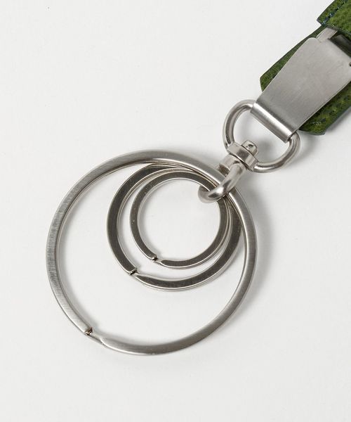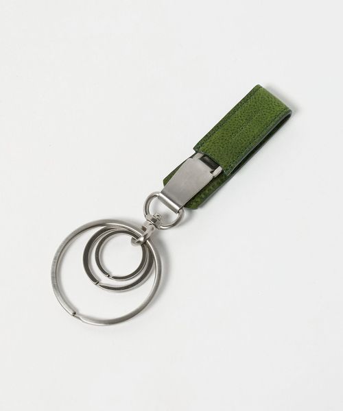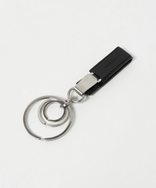 レザーとの組み合わせがモダンなクリップタイプのキーホルダー。