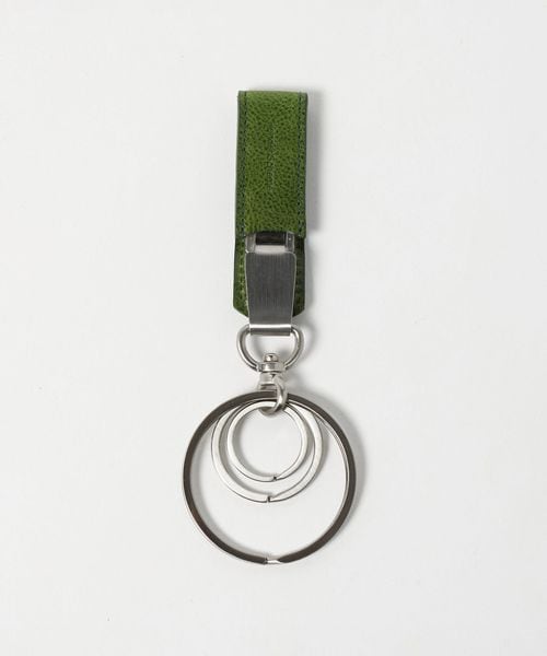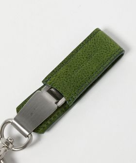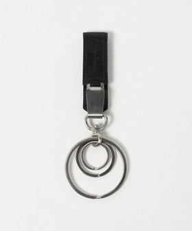 レザーとの組み合わせがモダンなクリップタイプのキーホルダー。