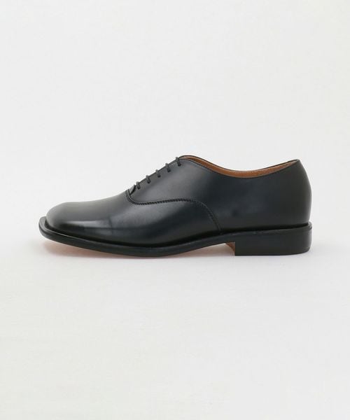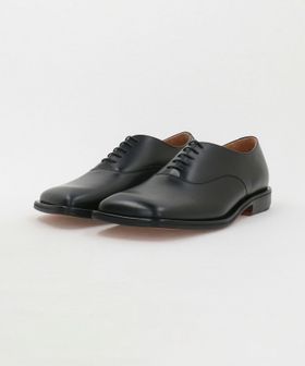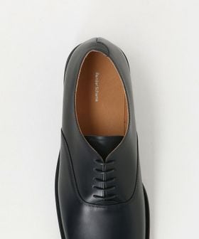 親指付近に山を立てたトゥの造形をはじめ、オブリーク由来の丸みと、エッジの効いた造形が同居する、独自のバランスが象徴的な内羽根シューズ。