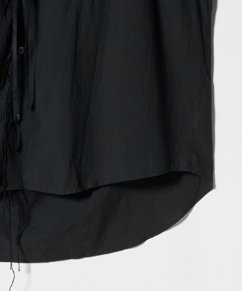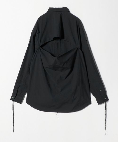 大胆なカッティングと繊細なディテールが共存する、エレガントなシャツ。