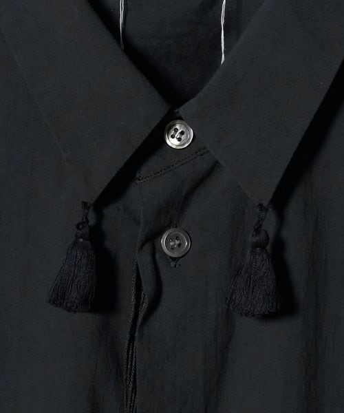 襟先のタッセルや、裾・袖にあしらわれた糸端がさりげなくも個性的なアクセントに。