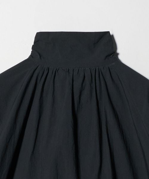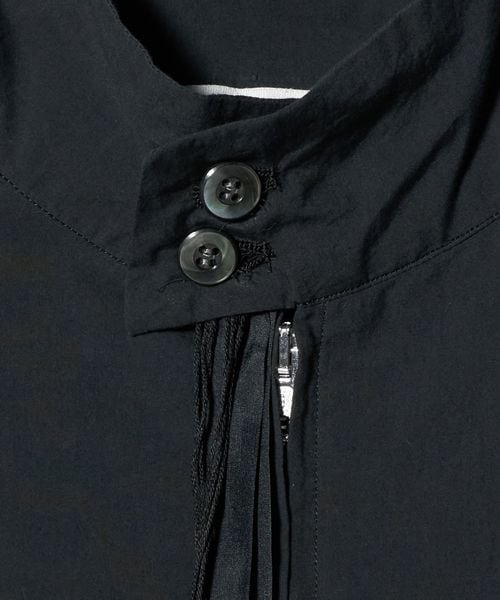 モードな感性が息づく、シックなブラックのスタンドカラーシャツジャケット。