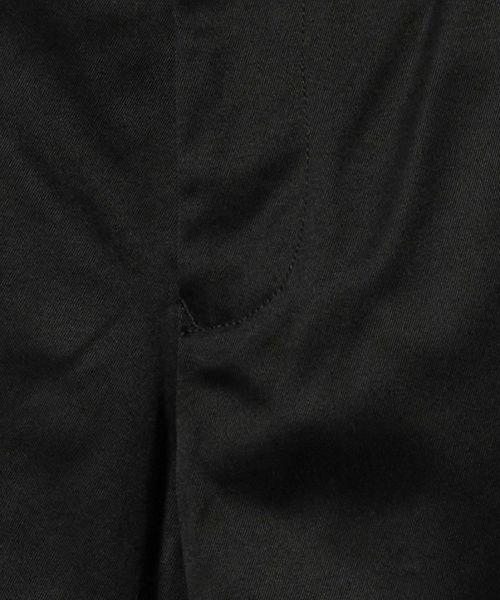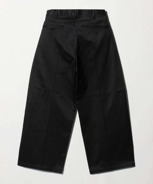 高密度に織られ、ドレッシーな光沢が特徴的なチノ素材をスラックスベースのタックパンツへと落とし込まれています。