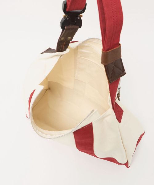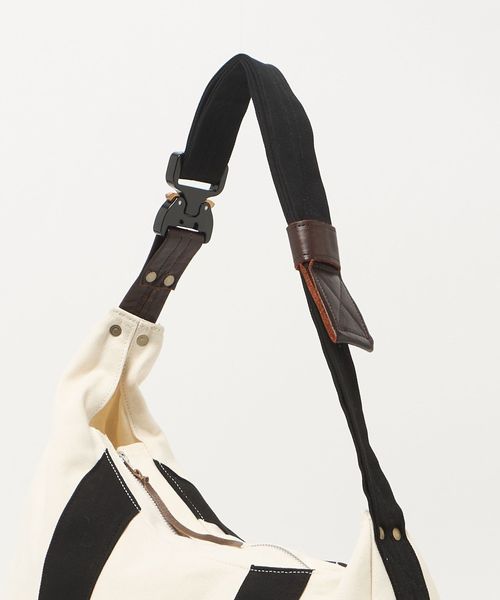 丈夫なキャンバス地を使用した変形ショルダーバック。