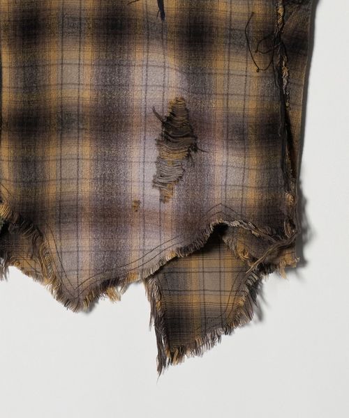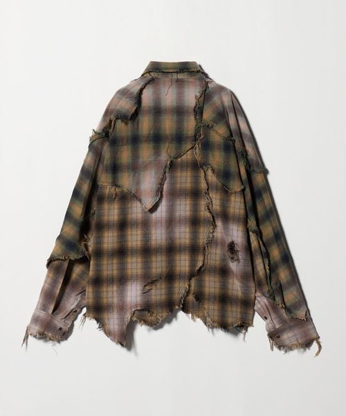 <KHOKI>としてはめずしいオーバーサイズのシャツは、ワイドからテーパードまで幅広いシルエットのパンツと好相性。
