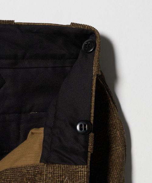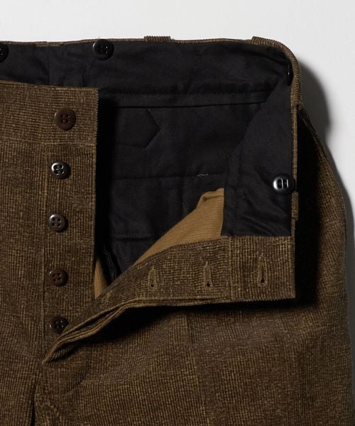 ウエストバンドは裏側にボタンを配置し、サスペンダーを合わせたスタイリングも提案しています。