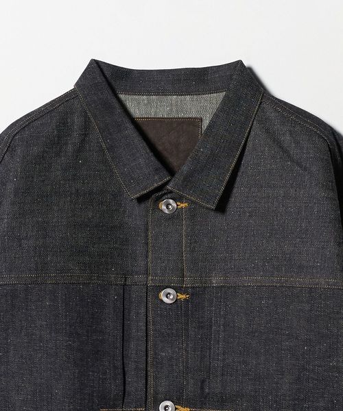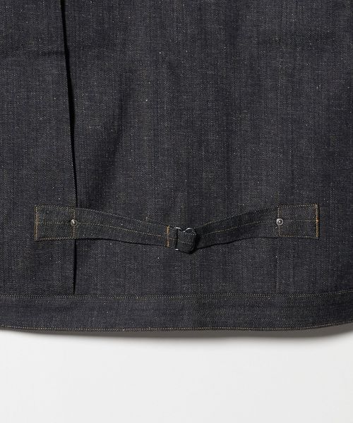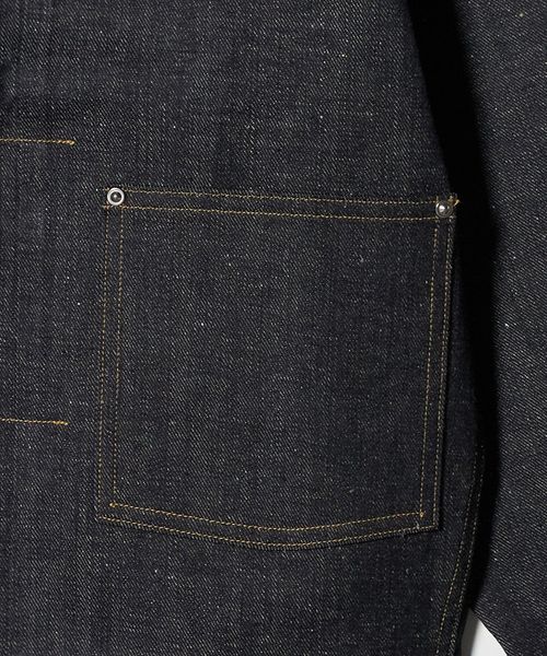 生地は、前見返しや袖口裏など随所に白のエッジを効かせたセルビッジデニムを使用。