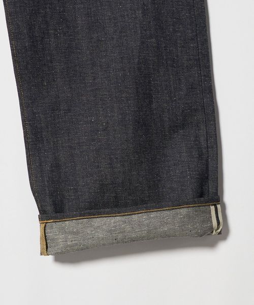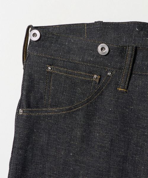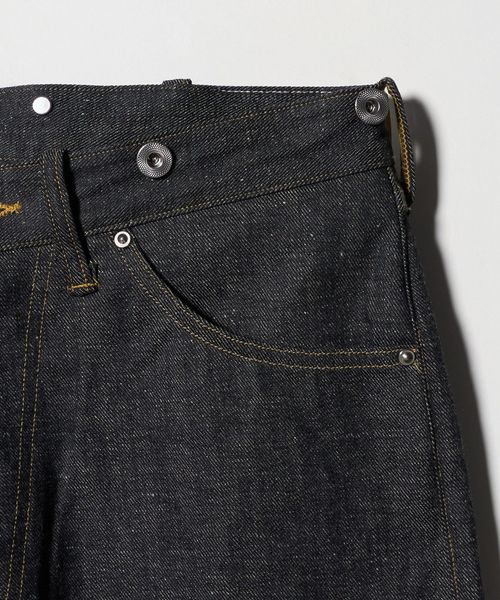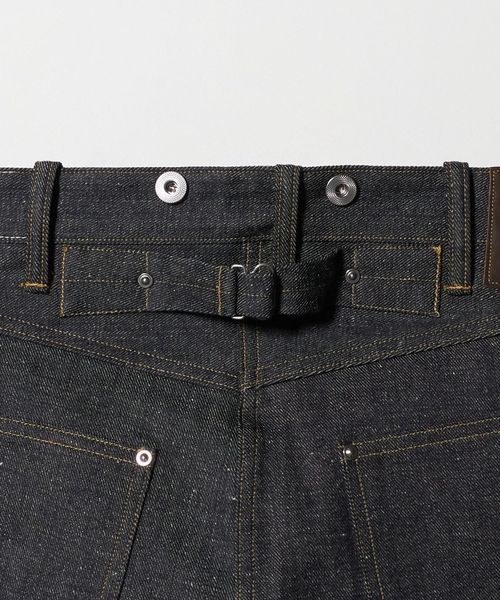 生地はベルト裏など随所に白い縁取りが施されたセルビッジデニムを使用。