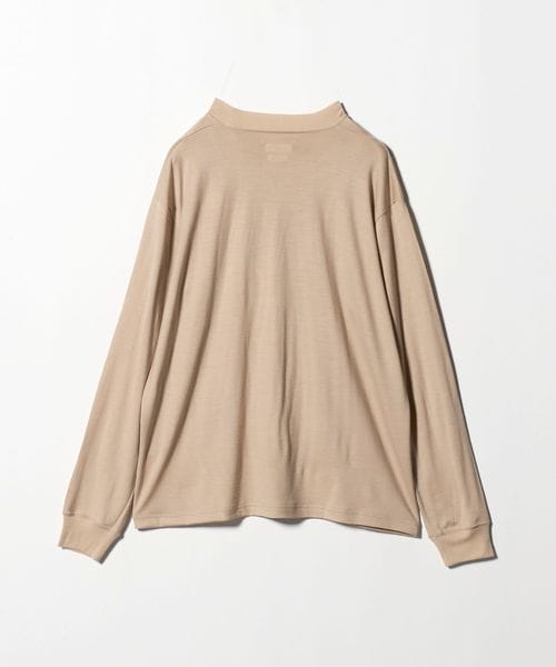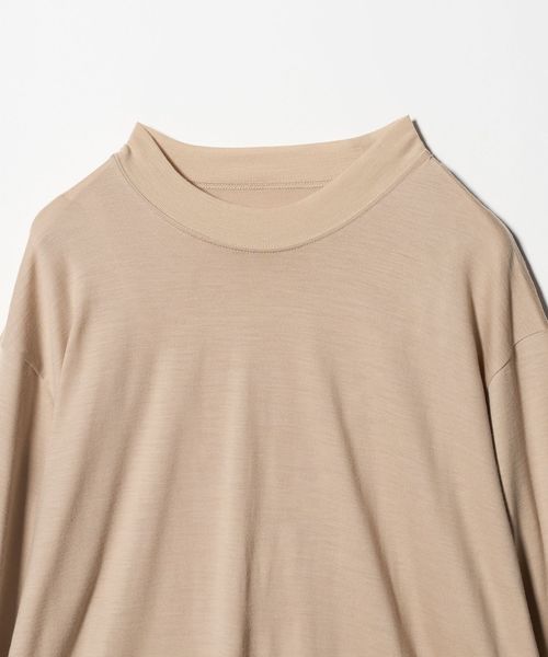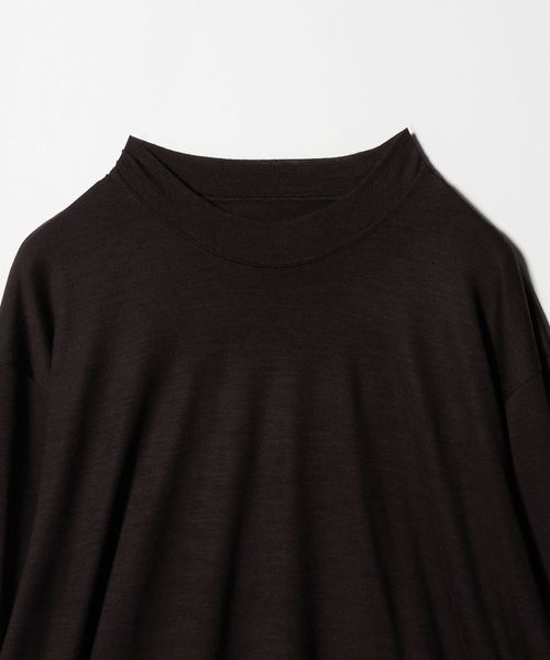 細番手のウール素材を使用した、ロングスリーブモックネックTシャツ。