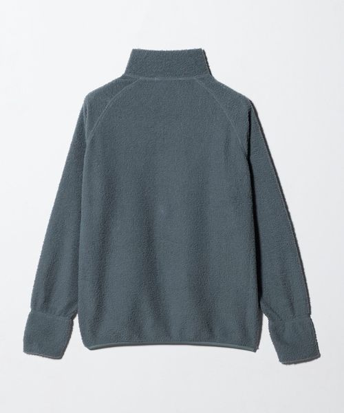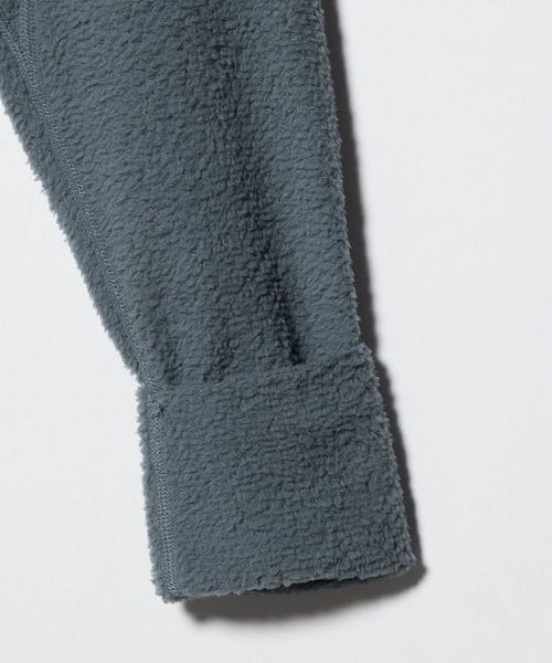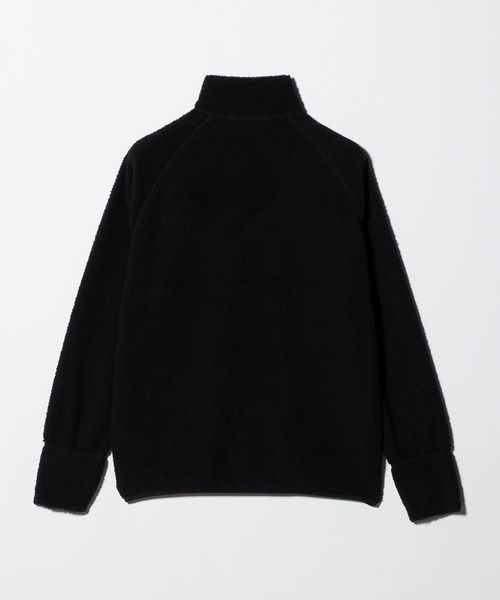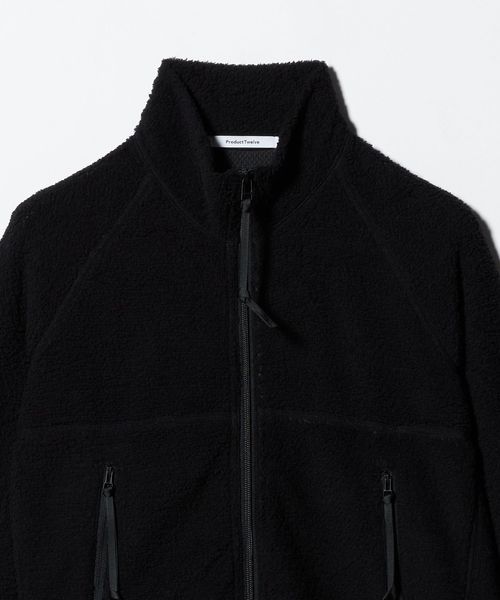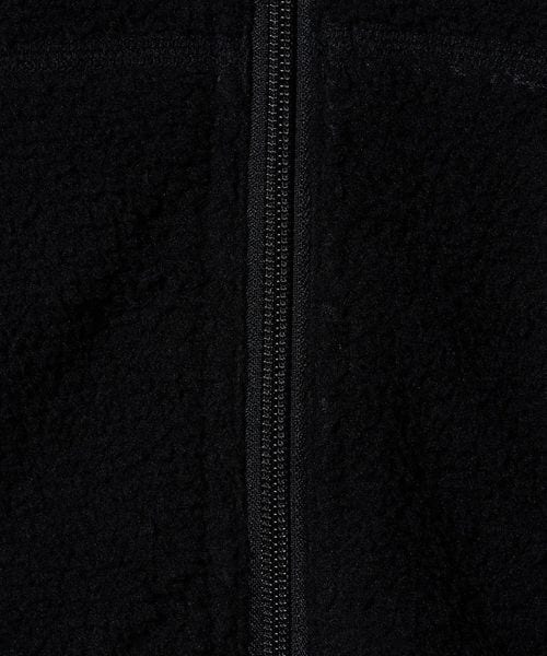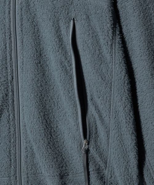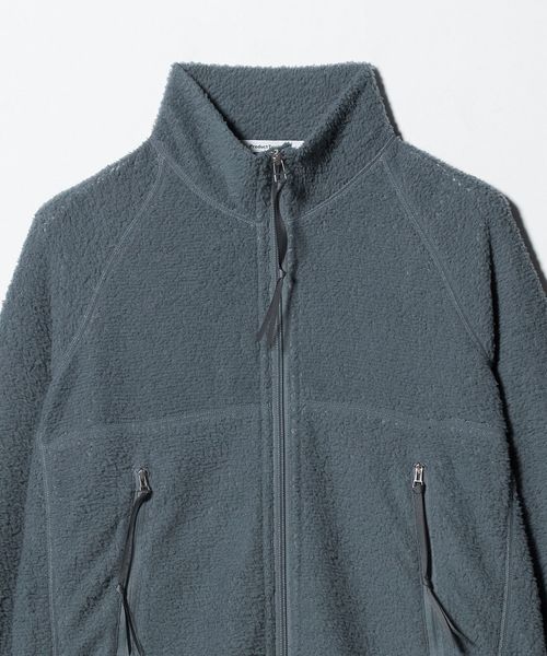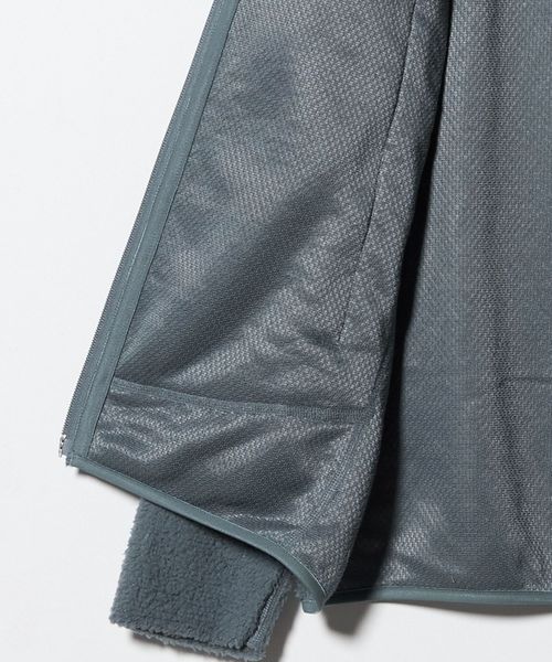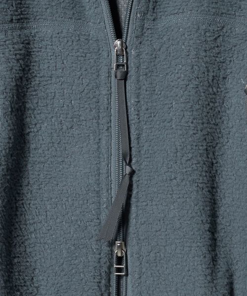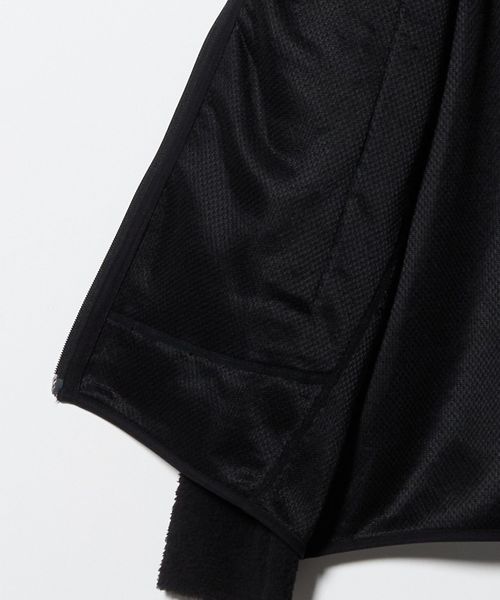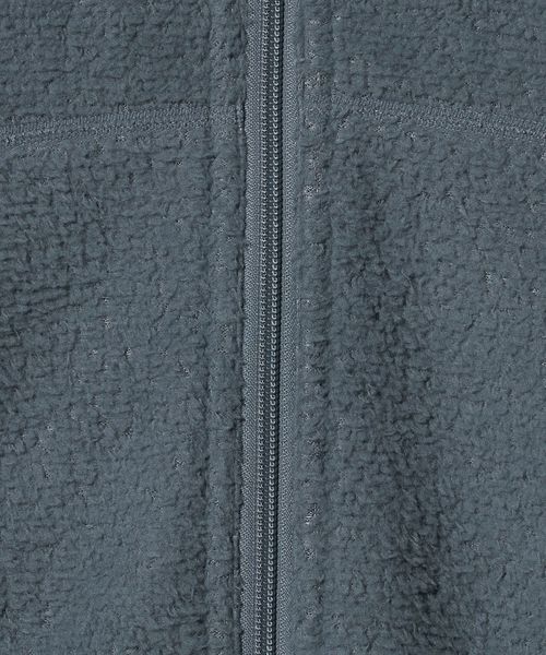 メッシュ状のベースに起毛部分が編み込まれた構造の素材を使用した、フルジップジャケット。