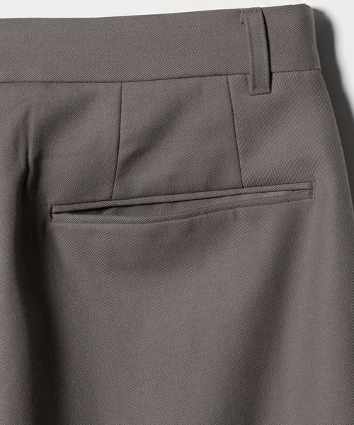 控えめなサイドのスラッシュポケットとミニマルなフロントクロージャーがすっきりとした印象を与え、カジュアルにもフォーマルにも使える汎用性の高いトラウザーズです。