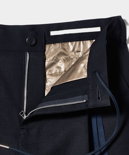 タックを入れた程よいゆとりのあるワイドストレートシルエットで、快適な穿き心地を実現。