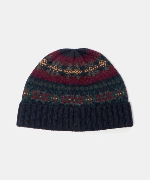 ネイビーがベースカラーとなったフェアアイル柄のビーニー。