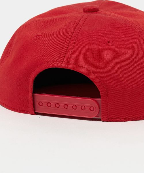 フロントと背面にロゴ刺繍が施された6パネルキャップ。