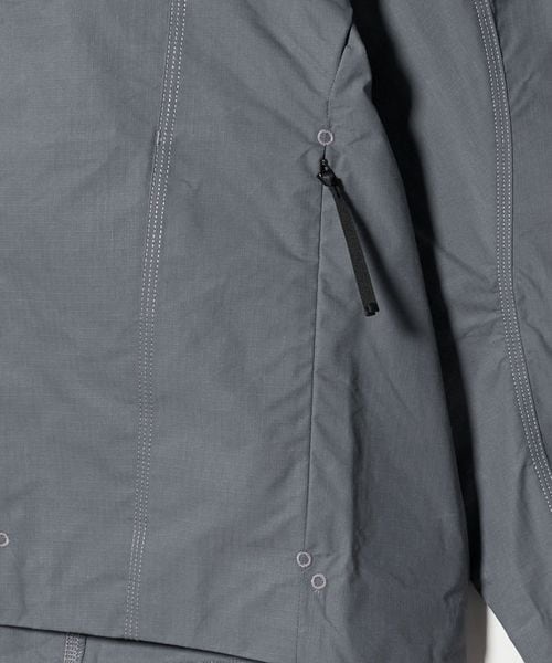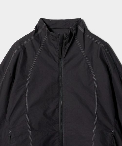 花のつぼみや種子から着想を得たフォルムで全体を縦のパネルで構成する、Goldwin 0のSeed Jacket のコンセプトを発展させたスタンドカラーのジャケット。