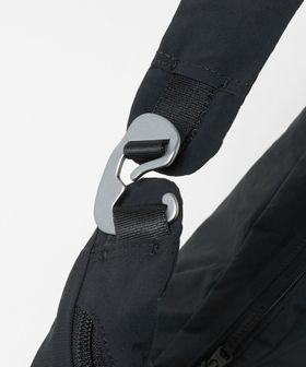 日本製のナイロン(リサイクル原料56%)生地は、硬度を高める特殊加工を施すことで、形状を保持して型崩れしにくく、同時に軽量であることが特徴です。フッ素フリーのはっ水加工が施されています。