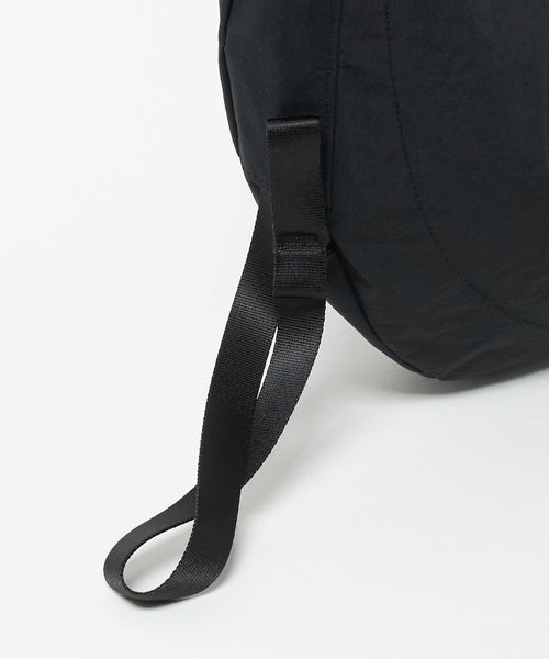 日本製のナイロン(リサイクル原料56%)生地は、硬度を高める特殊加工を施すことで、形状を保持して型崩れしにくく、同時に軽量であることが特徴です。フッ素フリーのはっ水加工が施されています。