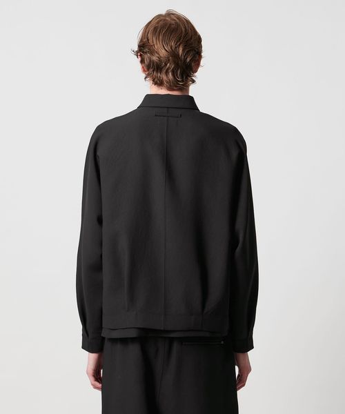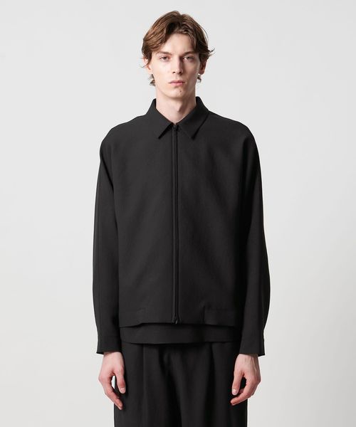 ふわりとした風合いが特徴の素材「+10」を使用した、新型シャツカラーのフルジップジャケット。