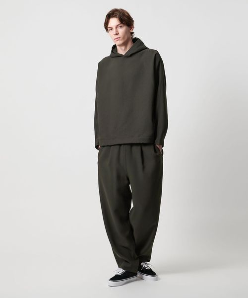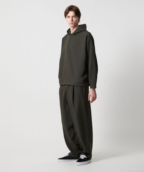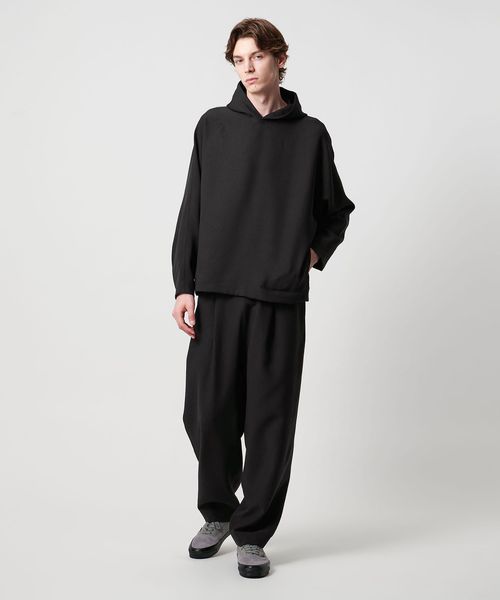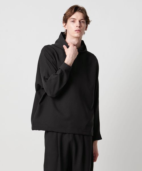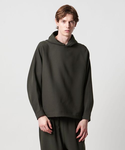 ふわりとした風合いが特徴の素材「+10」を使用した、プルオーバーフーディ。