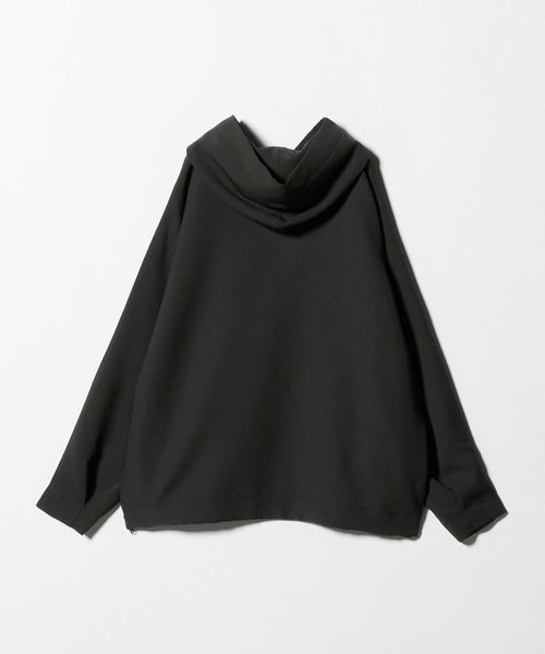 ドルマンスリーブと立体的なフードが特徴のオーバーサイズシルエット。