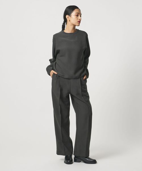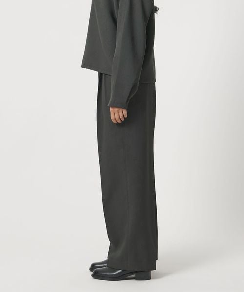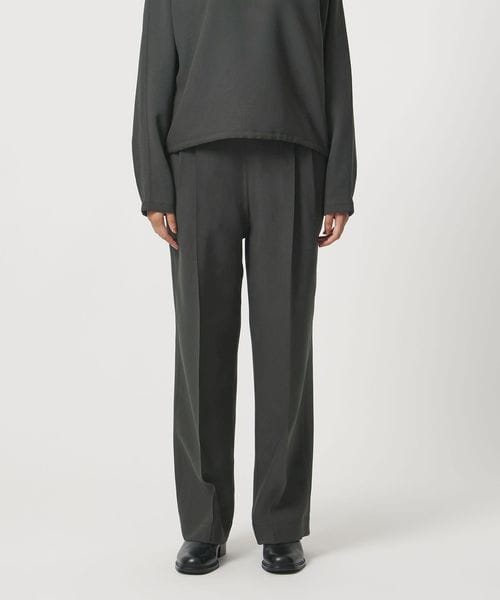 ふわりとした風合いが特徴の素材「+10」を使用した、新型のワイドストレートパンツ。